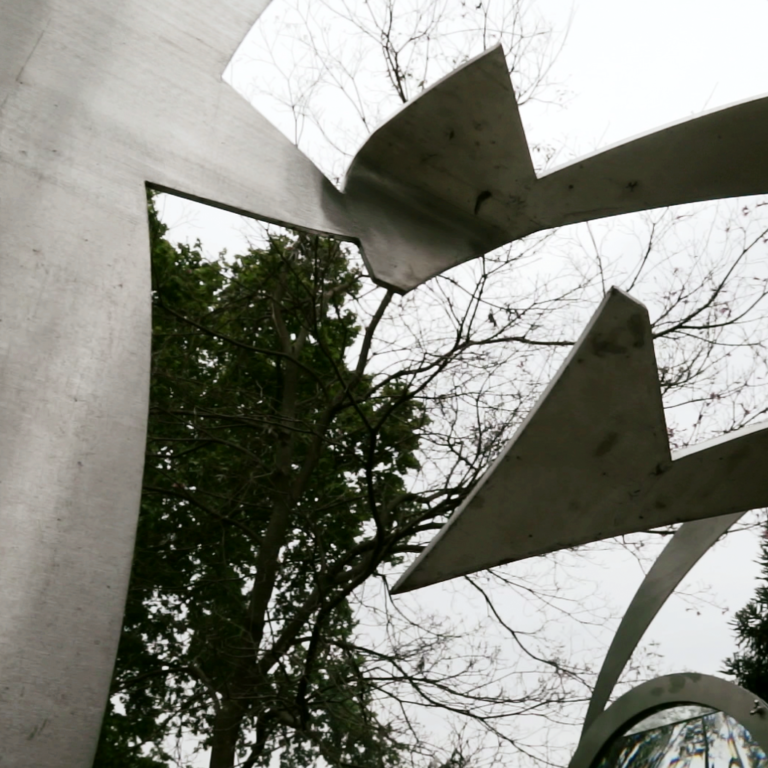 Héctor Tassino presenta una gran escultura de metal que contiene diversos lentes. Busca que el espectador interactúe y transite la obra, disponiendo de lupas, de manera tal que desde un punto central se pueda observar todo el ambiente circundante. En palabras del artista, “se ve el universo transformado por el arte”.