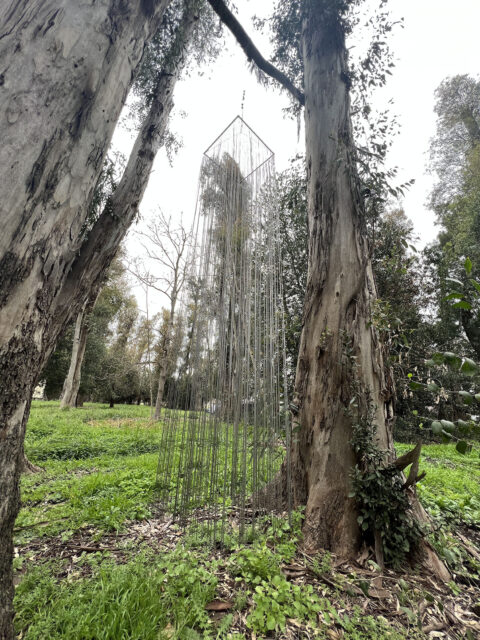 La obra del maestro León Ferrari pertenece a la serie de esculturas sonoras realizadas por el artista durante su exilio en la ciudad de San Pablo, Brasil, a finales de los años 70 y principios de los 80. Estas obras sonoras tienen la particularidad de ser, a la vez, esculturas e instrumentos, es decir que pueden ser observadas tanto como intervenidas por el público. El artista las concibió para ser emplazadas en espacios abiertos: sus materiales permiten la permanencia a la intemperie. La pieza exhibida en MuseoCampo fue realizada por la FALFAA-Fundación Augusto y León Ferrari, bajo la supervisión del artista.